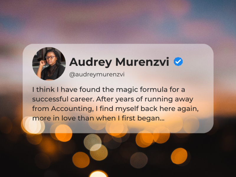 I am a Chartered Management Accountant by day and digital creator by night. Being born in Harare, and raised all over Zimbabwe gifted me with perspective through interacting with various households and cultures.